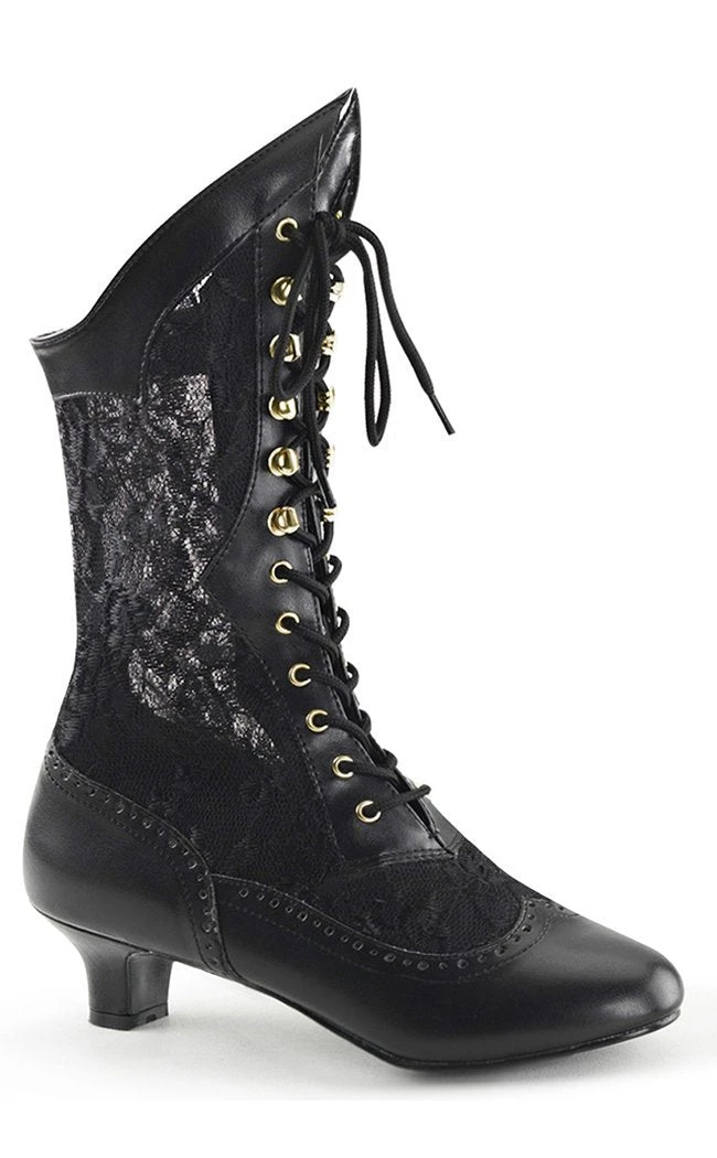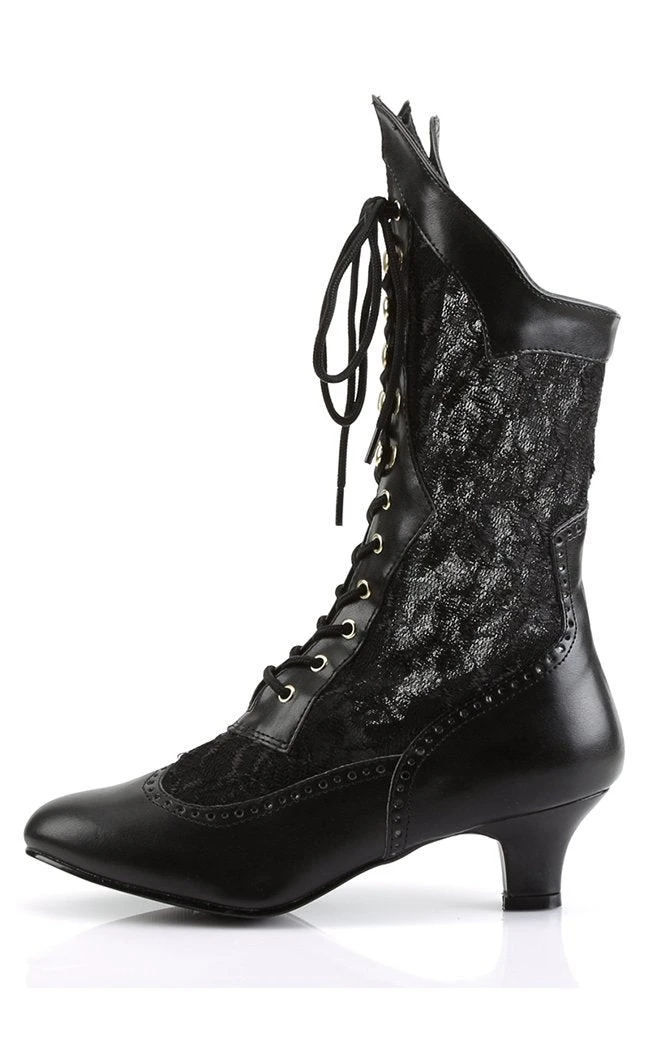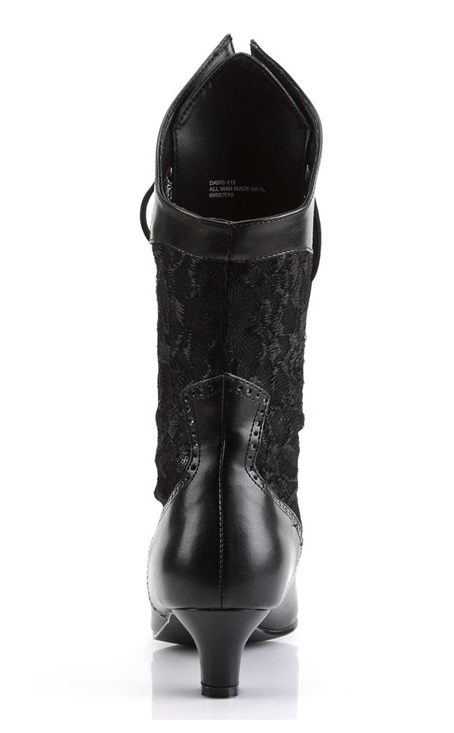 2″ Heel, Blk Pu-Lace Victorian Ankle Boot, Lace, Pioneer