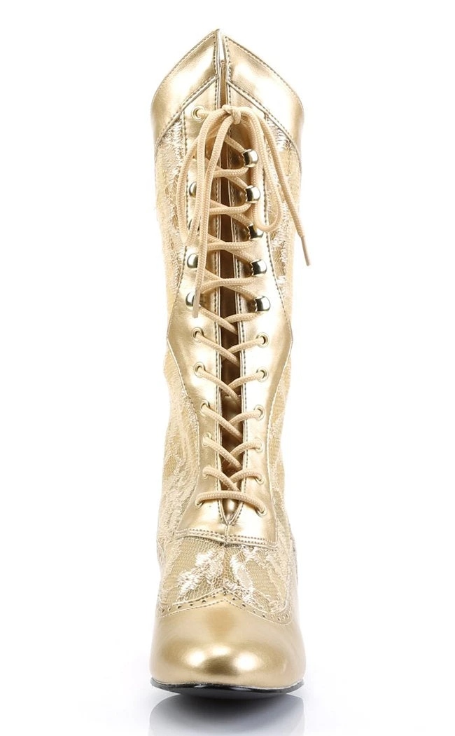 2″ Heel, Glod Pu-Lace Victorian Ankle Boot, Lace, Pioneer