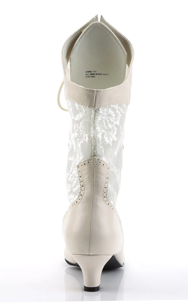 2″ Heel, Ivory Pu-Lace Victorian Ankle Boot, Lace, Pioneer