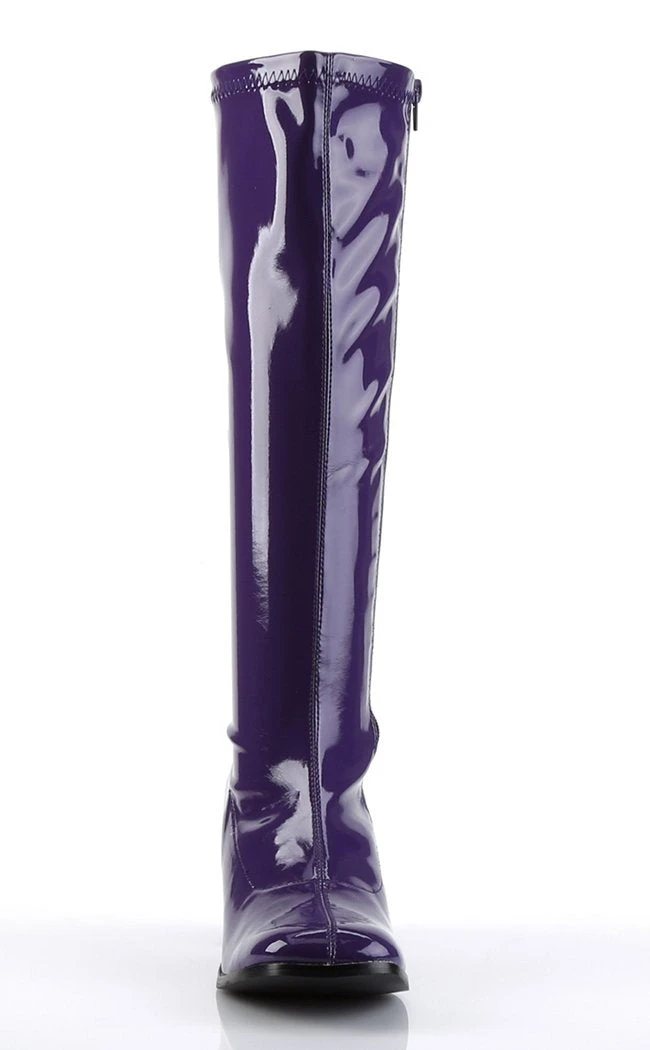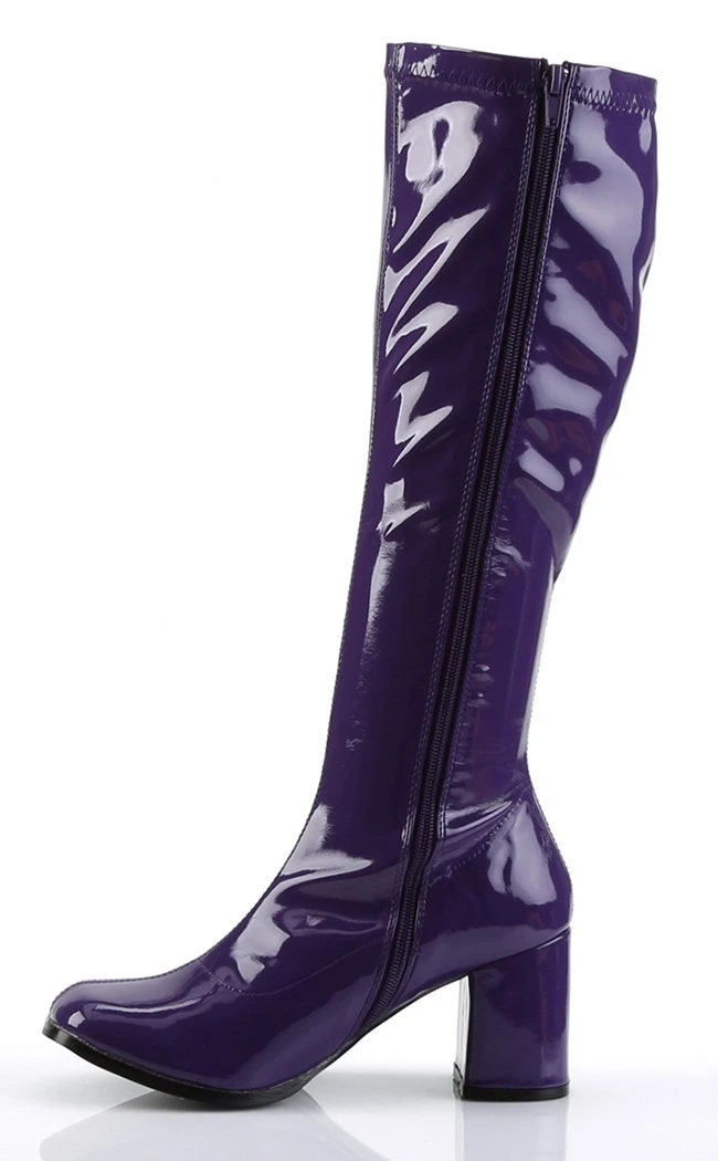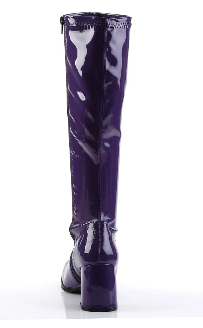 3″ Block Heel Gogo Boots, Purple Stretch Pat, Side Zip