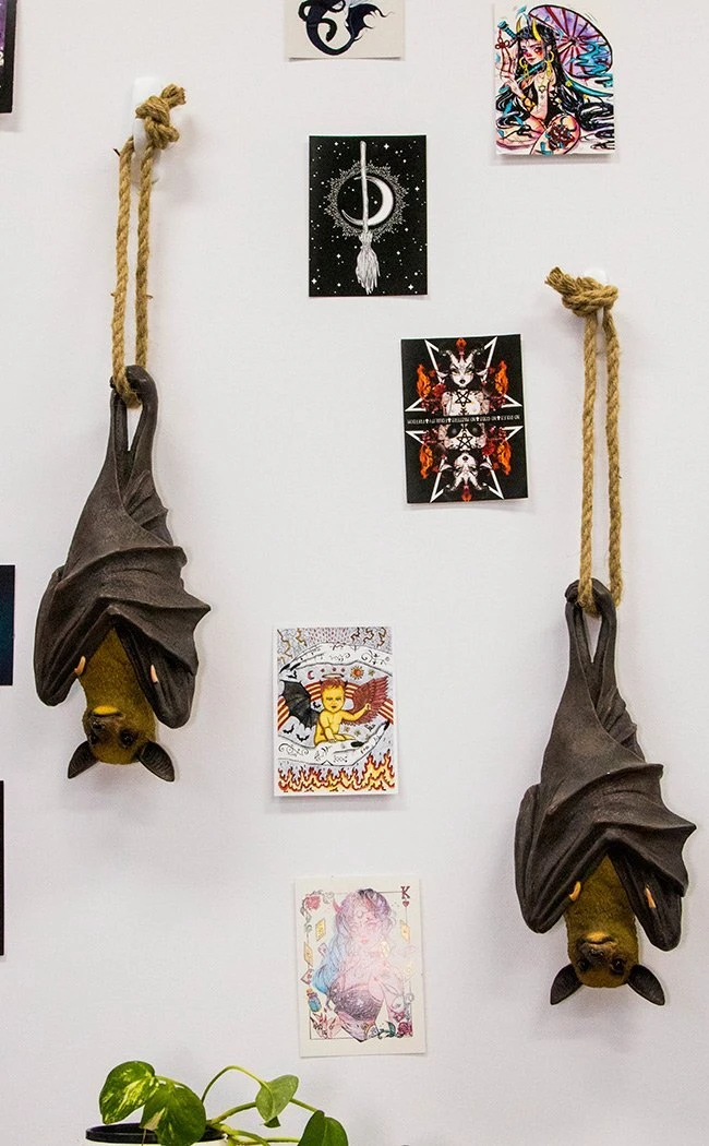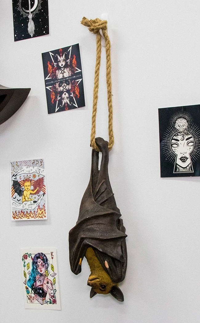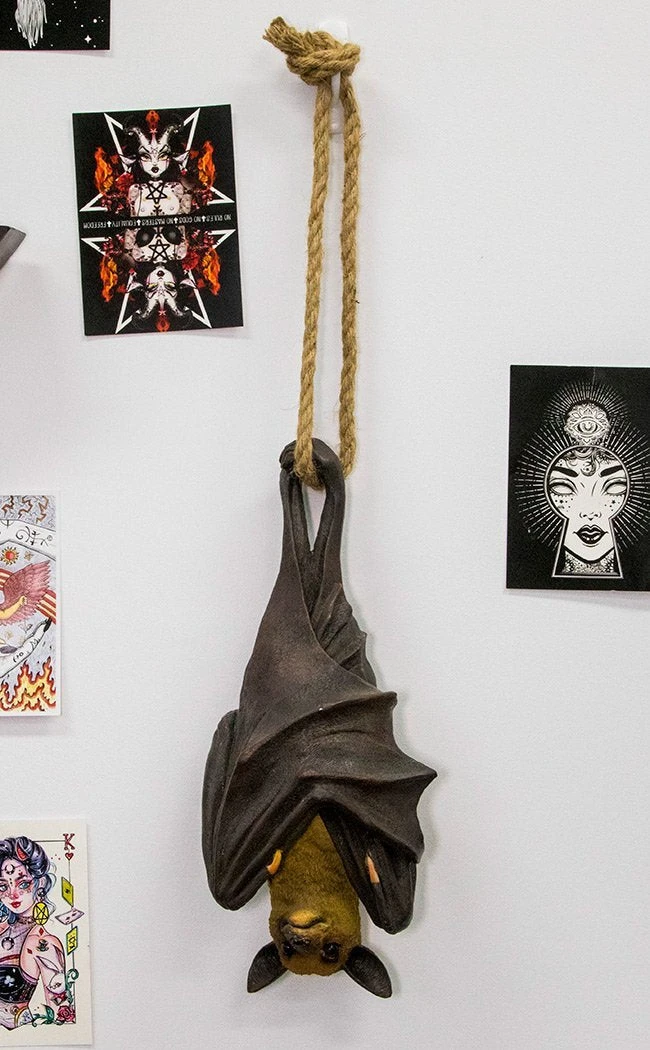 No cosy cave is complete without its screechy denizens! This cheeky little bat hangs from a rustic rope, wrapped up warm in his leathery wings to hug himself to sleep. Â
