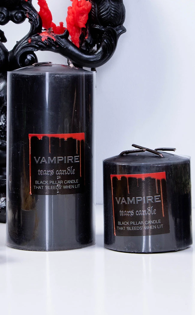 Set a sinister mood with these Vampire Pillar Candles! This chunky 3 wick beauty looks like an innocent black candle at first glance, but light it up to start the show and watch it BLEED!
