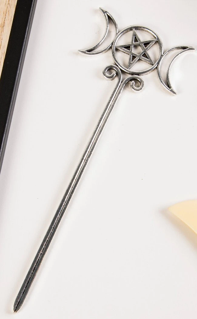 Tame those wild tresses with this magical talisman! Finished in shining silver with a triple goddess pentagram charm, use this enchanting hair stick to twirl your hair into a sleek updo or add as the finishing touch to all your fave hairstyles!