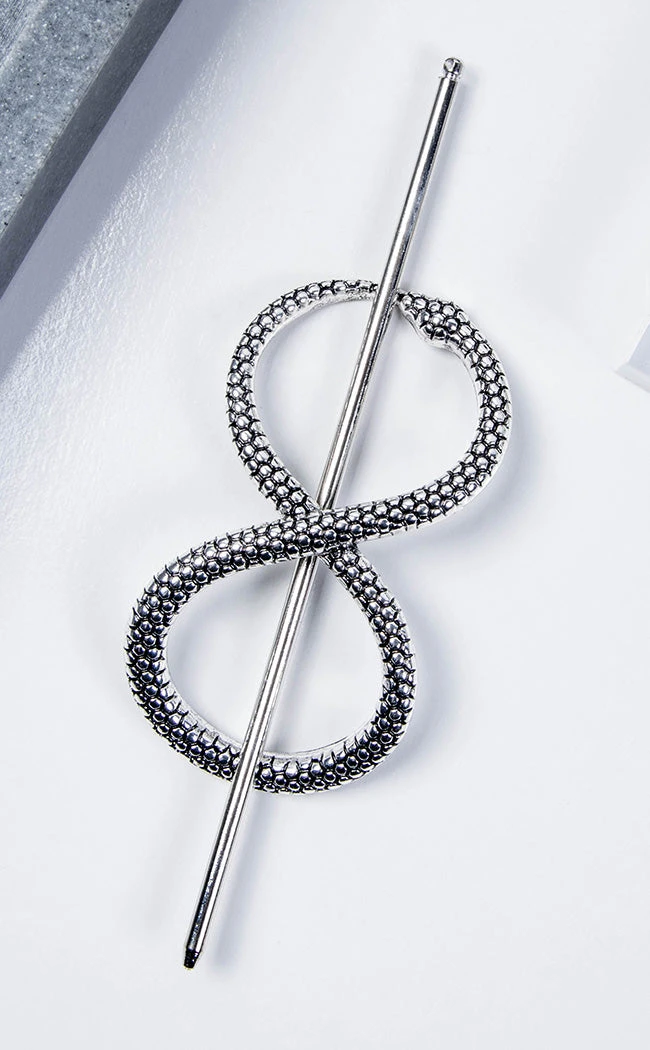 Tame your tresses with the Ouroboros Hair Pin! This hairpin features a separate bar and figure-eight serpent to secure your hair into tight buns and other updos.