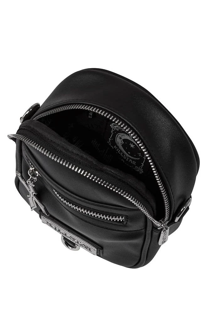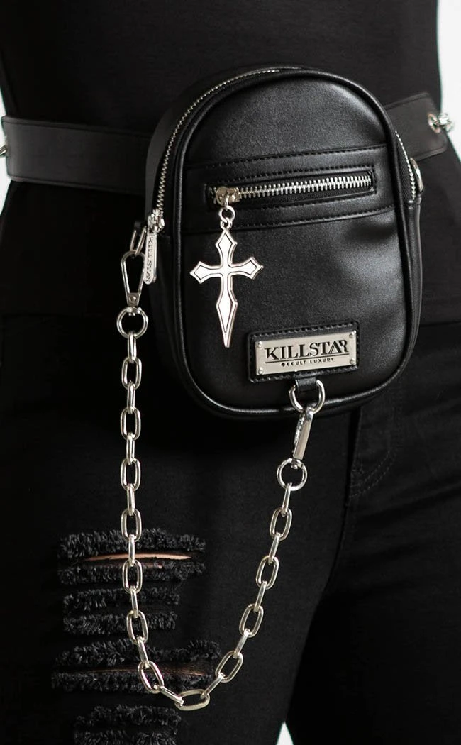 The Skye waistbag is the perfect extra storage bag for festivals and concerts, or really any time you’re gonna be moving around and don’t wanna have to worry about a bag. Securing with a sick waist chain, the bag is made of luxe faux leather and has multiple compartments. The front zip features a killer cross charm and a detachable chain decal hangs down from the sides.
