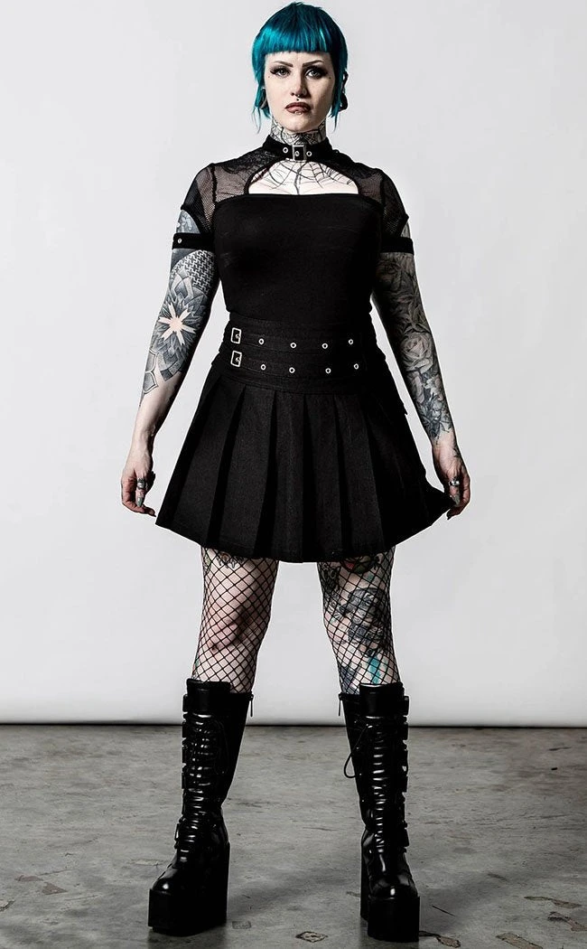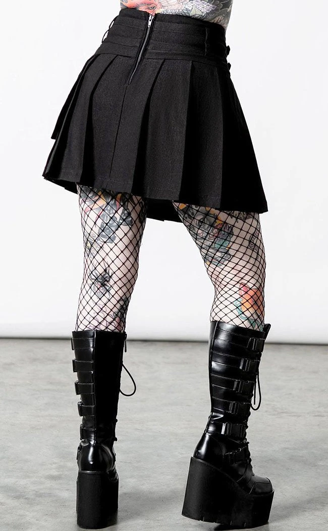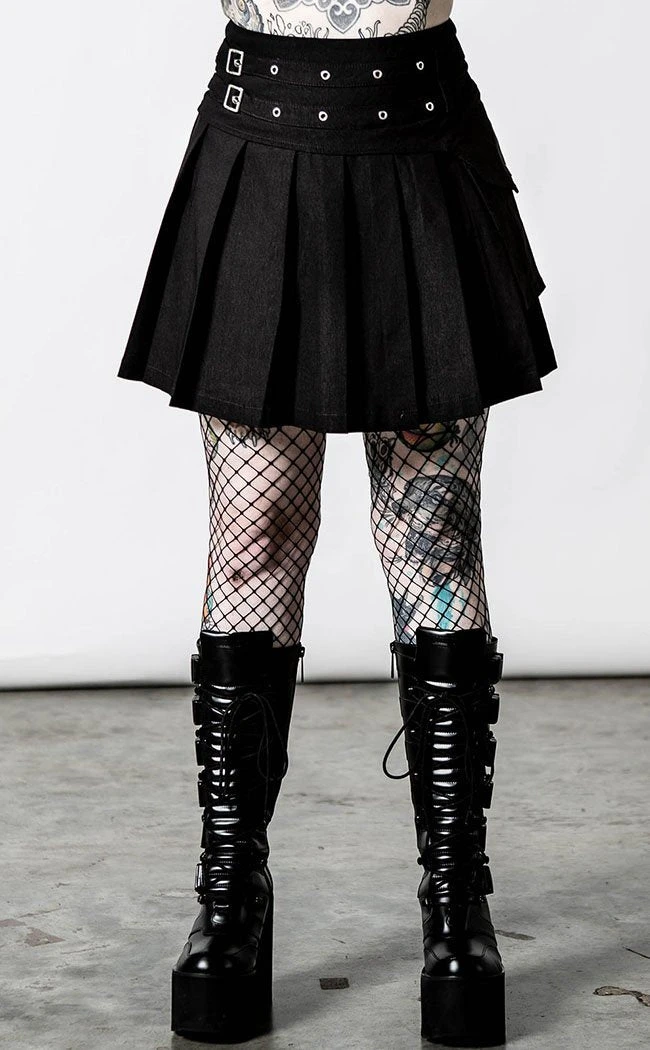 The Captive Spirit Mini Skirt is the cutest summer piece you’ll ever find! The pleated body hangs from a wide waistband, which is decked out with two buckled straps and a handy side pocket for the ghoul who’s prepared.
