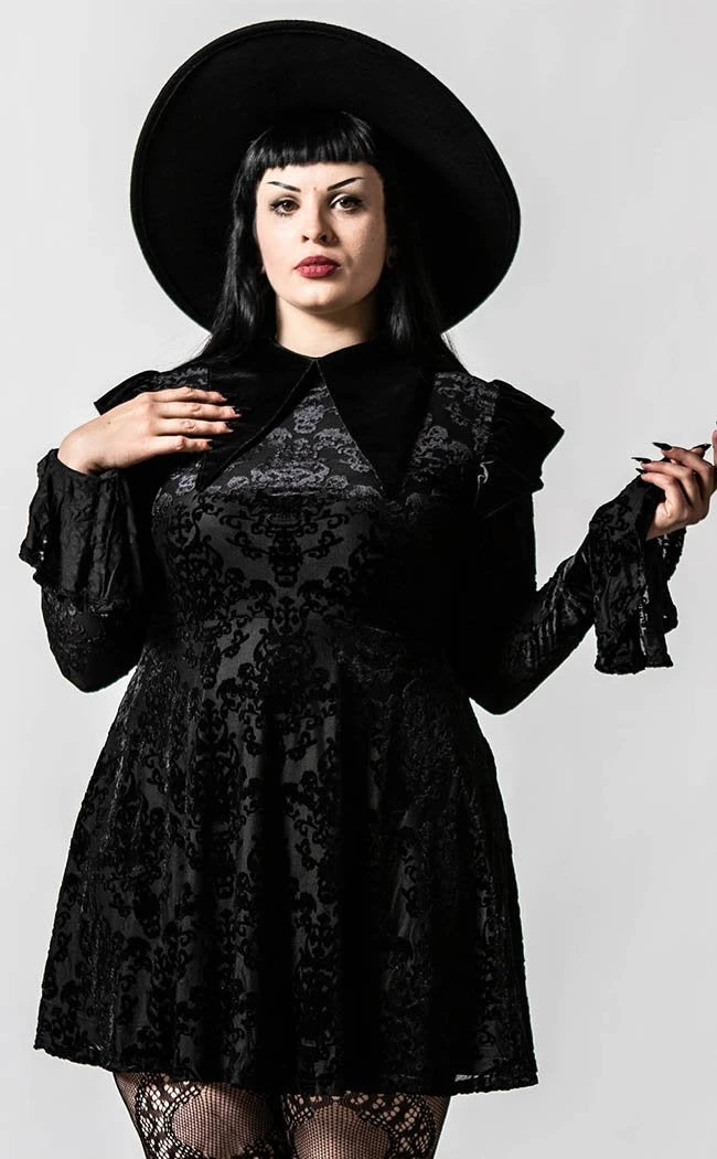 Get that “just resurrected and ready to wreck sh*t” lewk with the Carpe Noctem Collar Dress! Luxury velvet greatest a cosy yet flattering fit, forming an exaggerated collar and ruffle trims. The back features a cheeky cutout adding to the drama presented by the wicked burnout pattern.