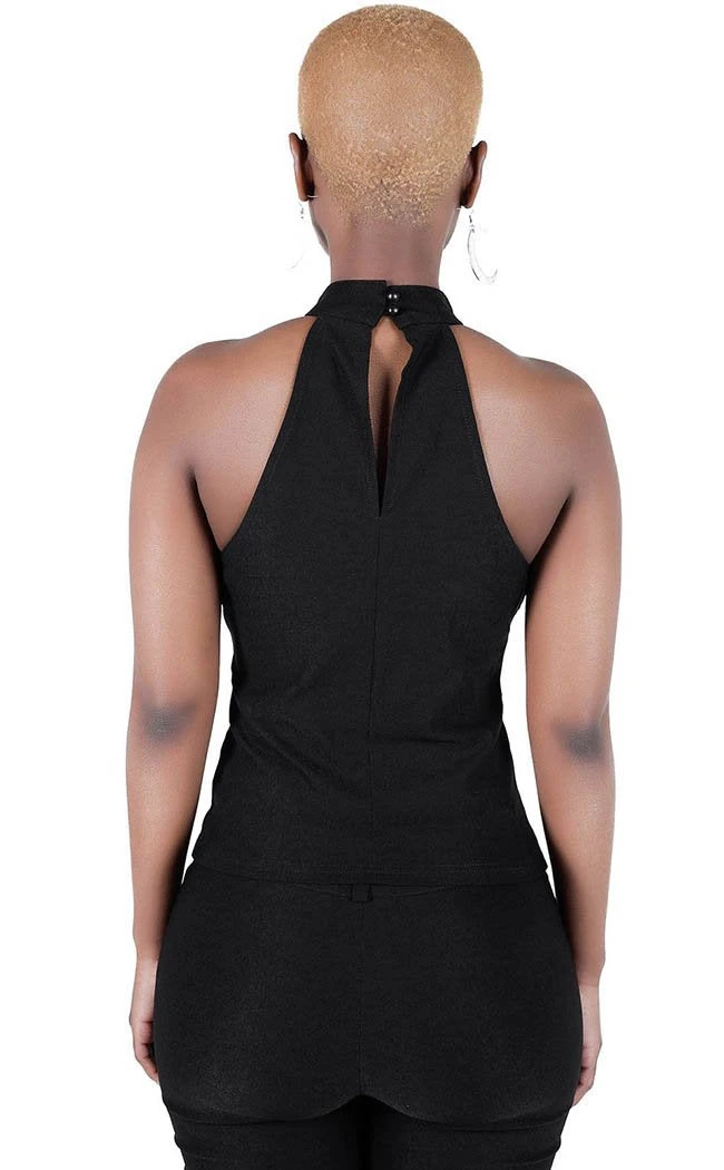 A strappy high neckline is accented by lace ups and a silver pentagram charm. The bodice fastens with a full length chunky zip to get you looking sultry and badass!