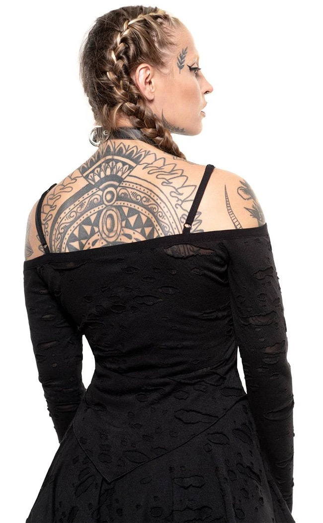 The Dust Devil Top is the best combo of wasteland chic and ethereal witch vibes. The bardot neckline features a lace-up detail, the long waterfall sleeves providing the extra flair of drama you deserve. The fabric has a distressed finish, which adds sexy texture to any outfit combo.