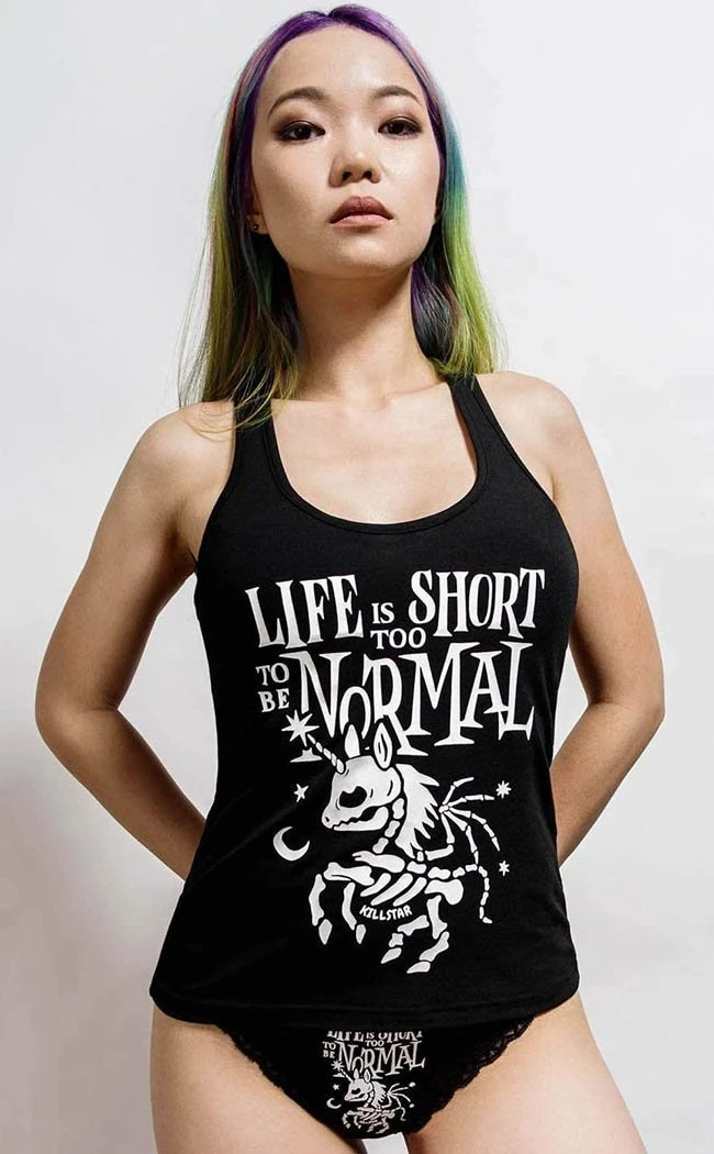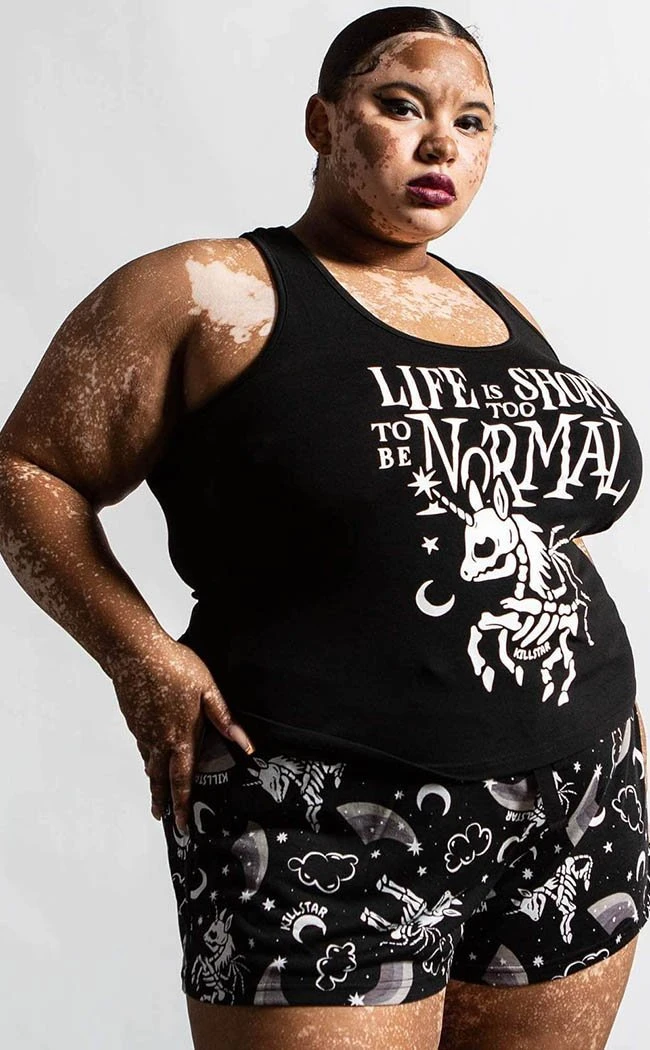 Get yer Gothicorn on! This cosy racerback vest features a scoop neck and a cute contrast print.  This top mixes and matches with your fave PJ bottoms easily, ideal for summer slumber parties and just lazing around the crypt in.