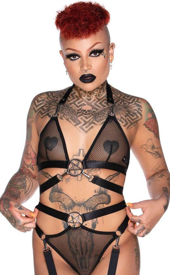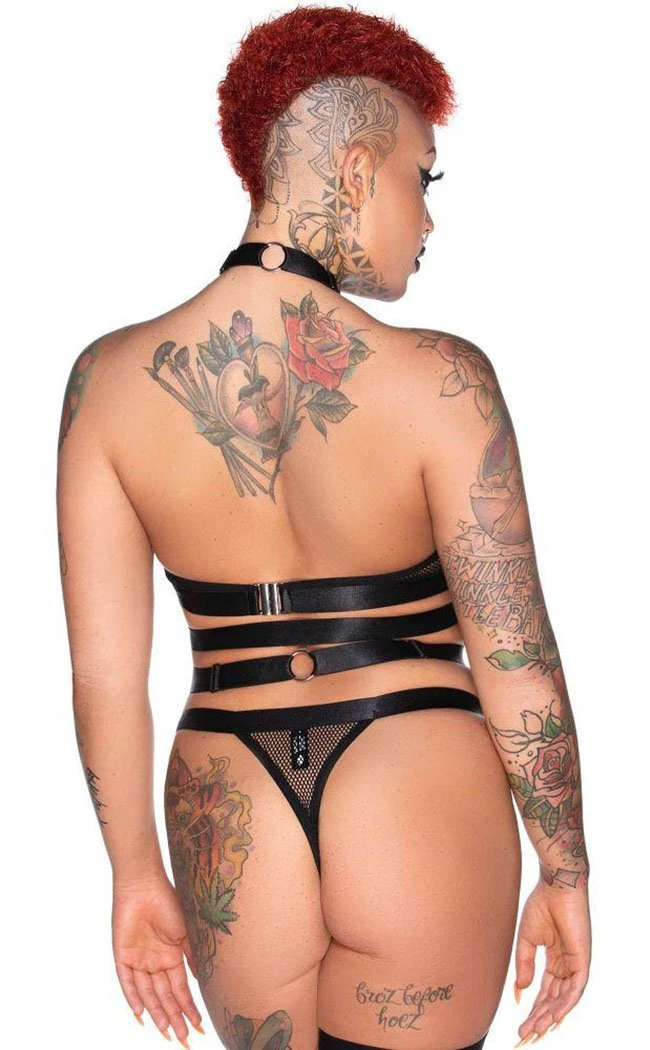 Claws out, kitty cats, here’s a lingerie set for all the club fiends. Super strappy and fully adjustable, this bralet has fishnet panels on the cups for a racier alternative to yer usual lingerie. Pair with the matching Hell Kitty Panty.. Â