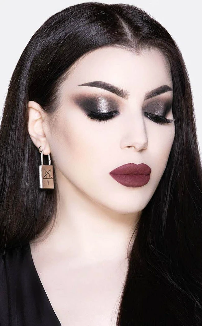 Never step out in boring trims again with the Locked Away Earrings. These babies are shining silver padlocks that have a faux stretcher effect, featuring an engraved pentagram as an extra sinful detail.