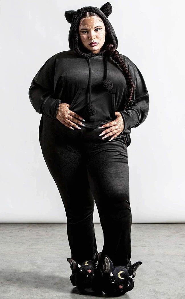 Impossibly soft and smooth, the relaxed fit hoodie features decorative tassels and a hood with widdle fluffy wolf ears. The pants are longline and super stretchy to match, perfect for sleepovers with the wolf pack and howling at the moon.