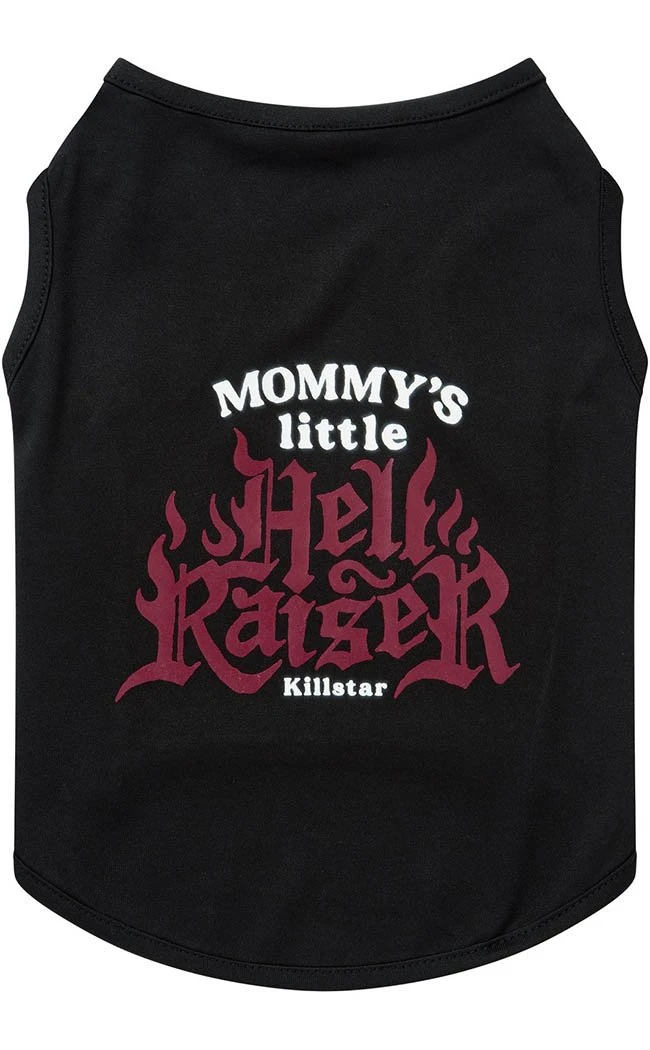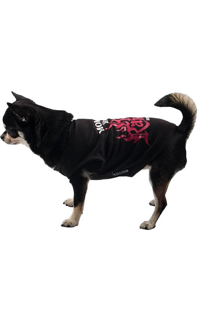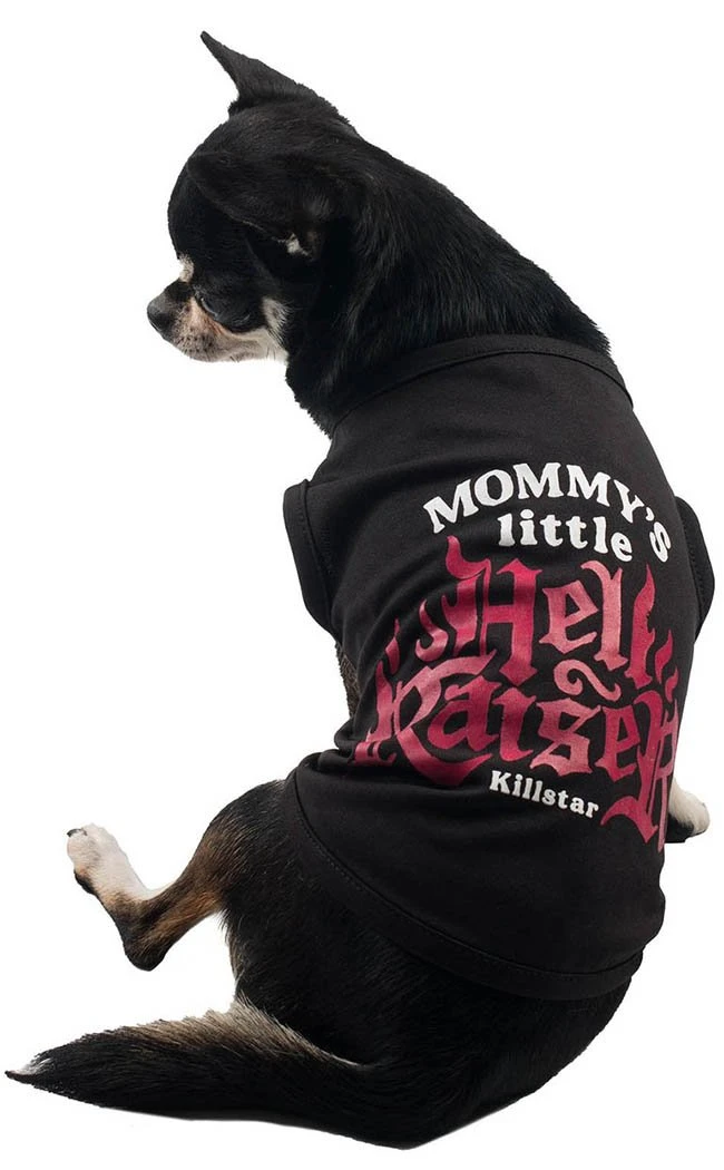 Give your little hellraiser the threads they deserve. Made of super-soft jersey, this little outfit features a large neck, a contrasting print and holes for the front legs.  The vest is light and ideal for dressing up in warmer weather so you can match with your furry bestie.
