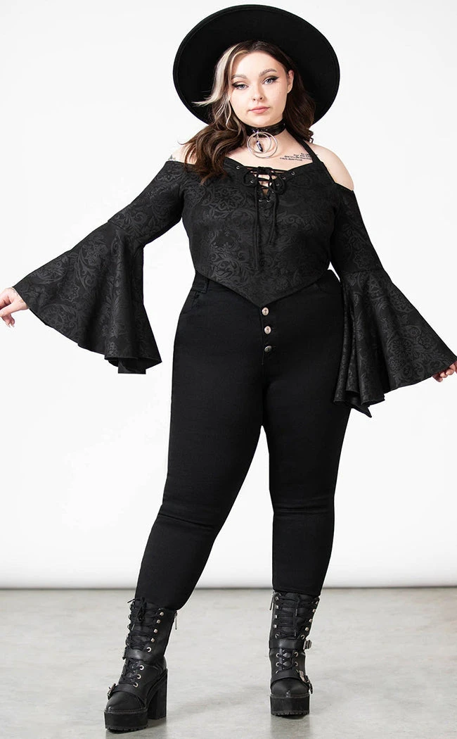 Model 2 is 5 ft 4″ and wears a size 3XL.