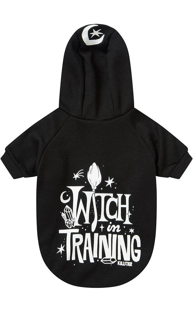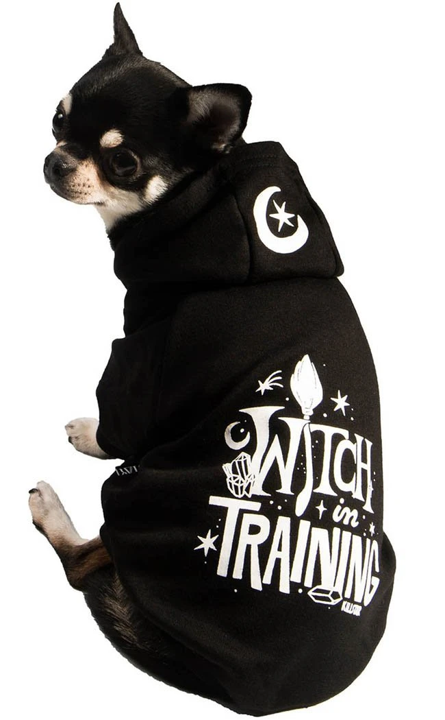 Dress up your pet in this magickal hoodie! Made of super-soft jersey, this little outfit features a large hood, a bold, white print and sleeves for the front legs. The hoodie secures with press studs for no stress on/off.