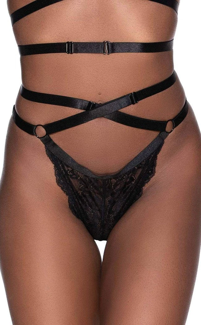 Harness your feminine energy in the She’s Deadly Lace Panty. This panty has a black soft-stretch lace body, g-string styling and seductive accent straps.Â