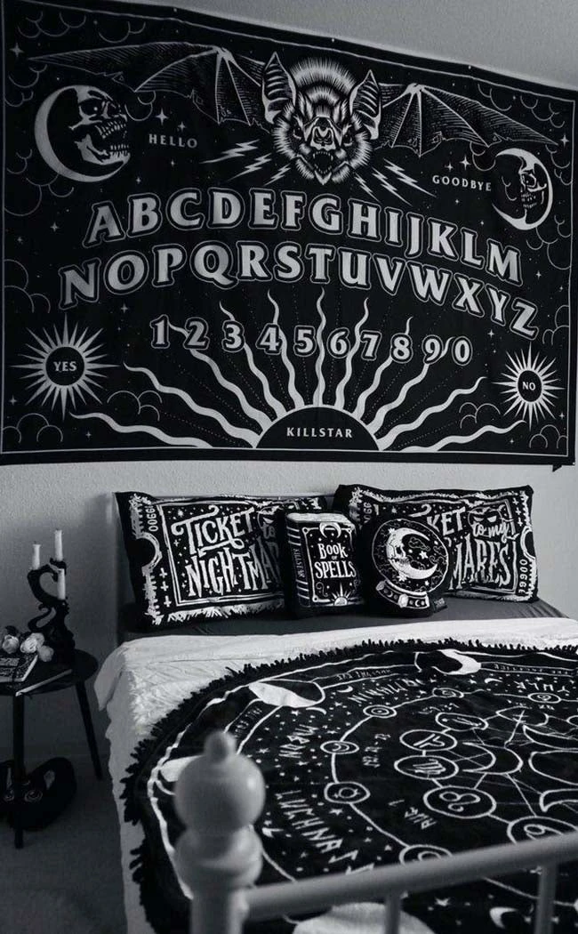 Complete your crypt in style with this enchanted tapestry; ‘Spirit Board’ evokes some magical vibes with a decorative large-scale print. Perfect above yer bed, couch or whatever – the other side is always lookin’ over you.