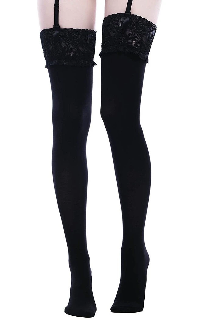 Feeling divine for your own damn self – You won’t be able to look away wearing our ‘Stop Staring’ Thigh High Stocking conjured using soft-touch fabric which stretches to perfection for a comfortable and seductive fit. Finished with dreamy lace trim detail these stockings are perfect styled with a lil gothic suspender belt or high waisted panties for a classic and alluring look that will have you feeling oh-la-la.Â