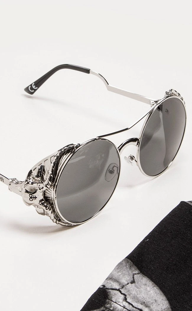 These wicked sunnies feature embossed metal frames with Baphomet detailing to keep you lookin’ fierce. The lenses are rounded with a gradient tint with 100% UV protection.