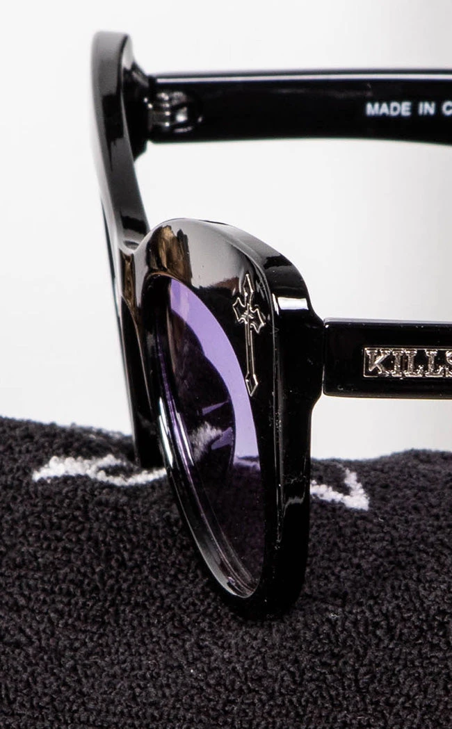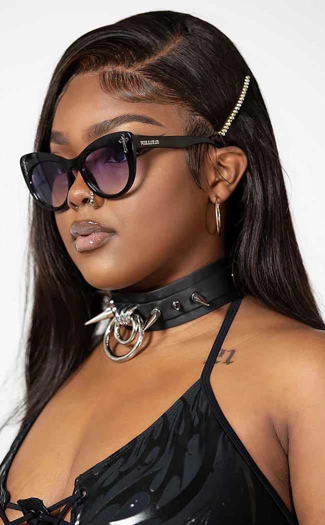 Bring some nocturnal glam to the beach in the Shady AF Sunglasses! These sleek black frames feature cross charms and the Killstar logo, the lenses being a statement purple gradient.