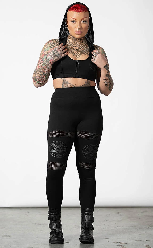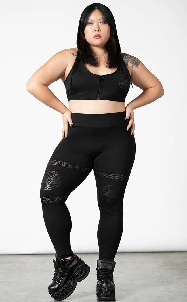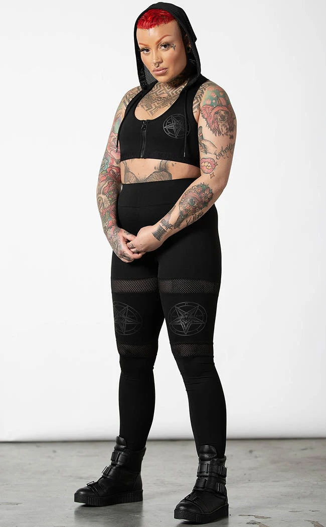 Put an end to dull activewear with the Terminus Sports Bra! This unique bra features a mesh hood and racerback, making a bold statement while being practical and super breathable. Extra deets like a Killstar branded elastic band, a pentagram motif and a handy zip up front complete the look.