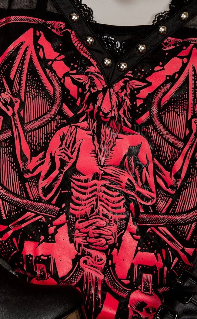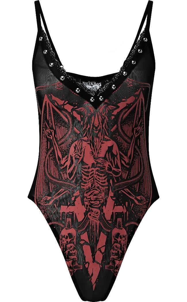 She doesn’t bow down to anyone; our ‘Your Highness’ statement bodysuit will make hearts skip a beat. Soft-stretch mesh construction for a flattering and comfortable fit, low neckline with delicate lace trim and dome studs. Adorned with a large contrasting motif to the full front. Adjustable shoulder straps. Purrfect for FaceTime with the Devil, howling to the moon and sorcery-hookups alike!