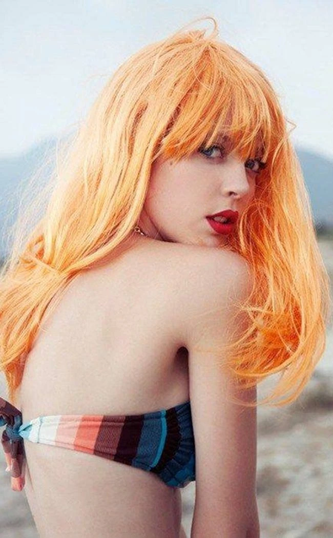 Perfectly peachy pastel perfection, almost a fantasy shade of strawberry blonde. This soft shade of orange is perfect for sunset hair.