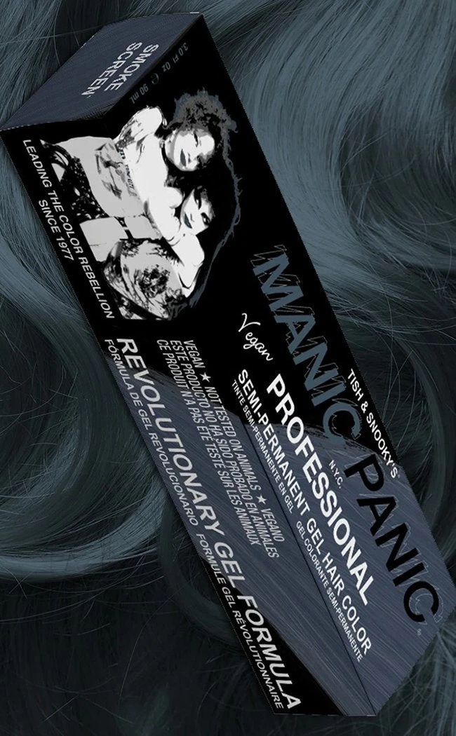 Smoke screen is a deep, slate grey that can be used alone or combines with other Manic Panic Professional colours to create unique smoky tones.