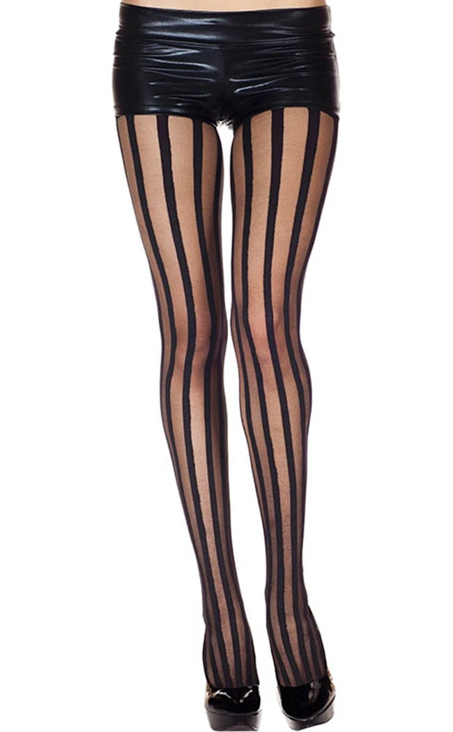 These pantyhose are sheer with opaque black stripes intercut, perfectly flattering and work with all gowns, skirts and seductive getups!.