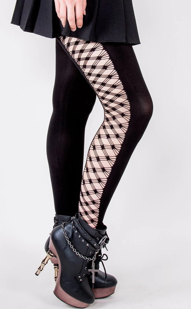 Music Legs Opaque Tights with Fence Net Sides in Black.
