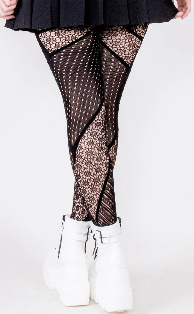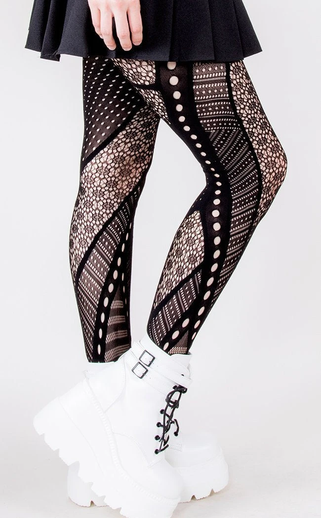 These lovely lace pantyhose combine the elegance of all varieties of lace stockings into the one patchwork masterpiece.