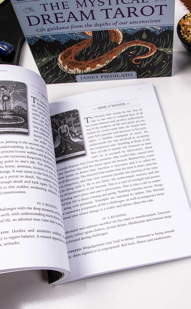 Make sense of the unknown with The Mystical Dream Tarot! Inspired by the mystical world of dreams, this beautiful tarot deck allows you to uncover the mysteries of life: seek answers and what life holds in store with guidance from author Janet Piedilato who draws from her own dream experiences to provide fresh insight into what each card has to offer in readings.Â