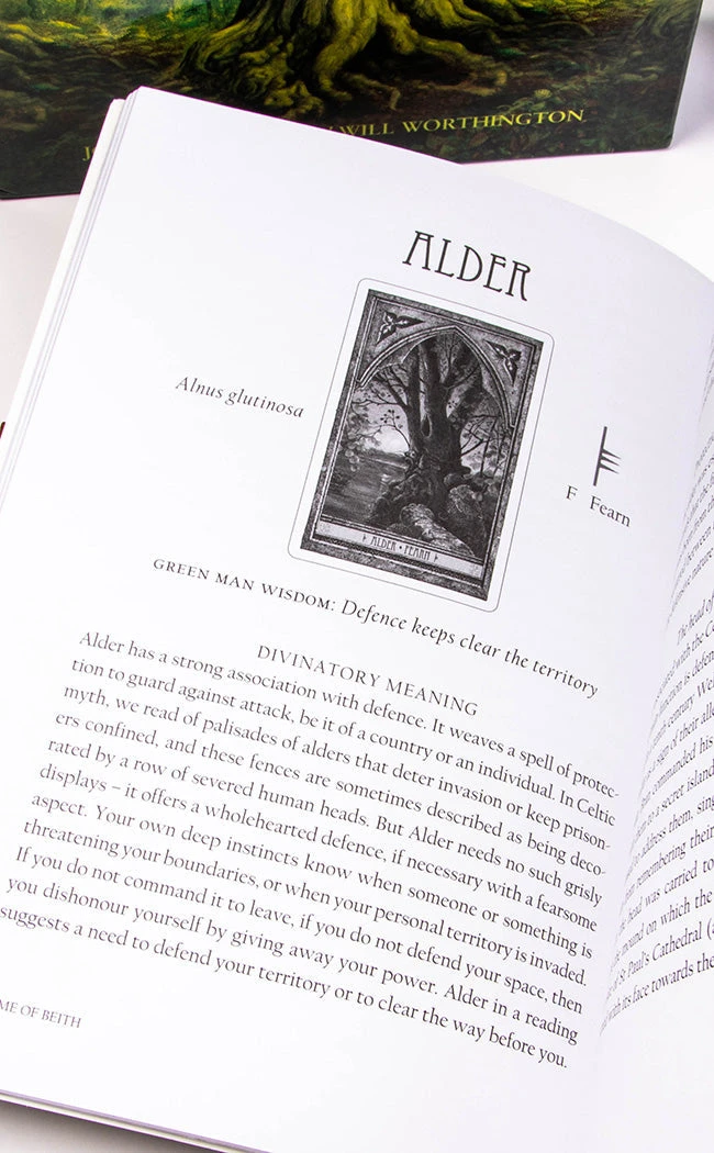 This beautifully illustrated 25 card deck depicts the trees that make up this ancient Celtic alphabet, with the Green Man present in every image as he invites you into his world. Discover the lore, myths and symbolism of each tree and the meaning of each card, harnessing this ancient knowledge to help you achieve your ambitions in life today.