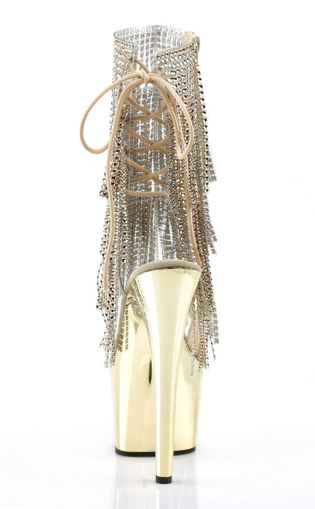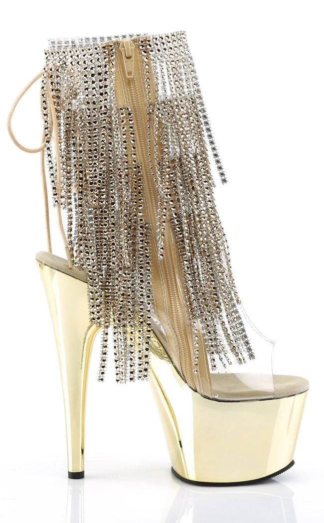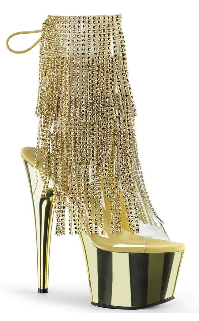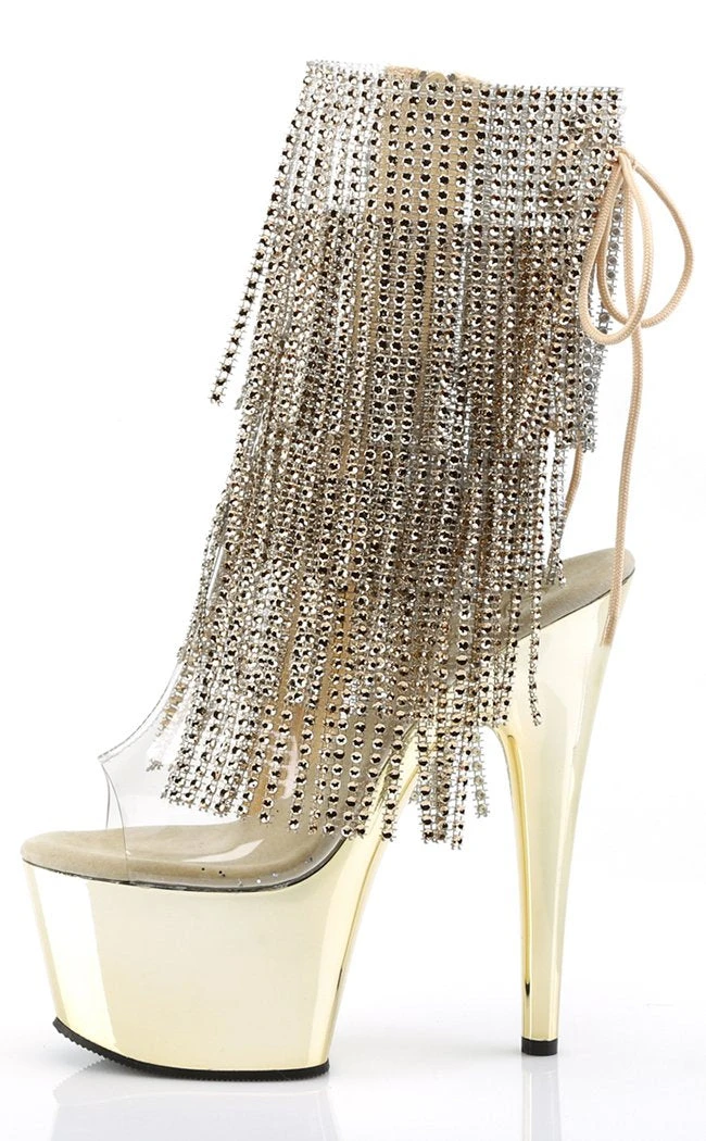 7″ Heel, 2 3/4″ PF Open Toe/Heel Lace-Up Fringe Ankle Boot