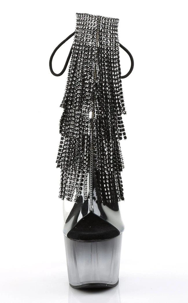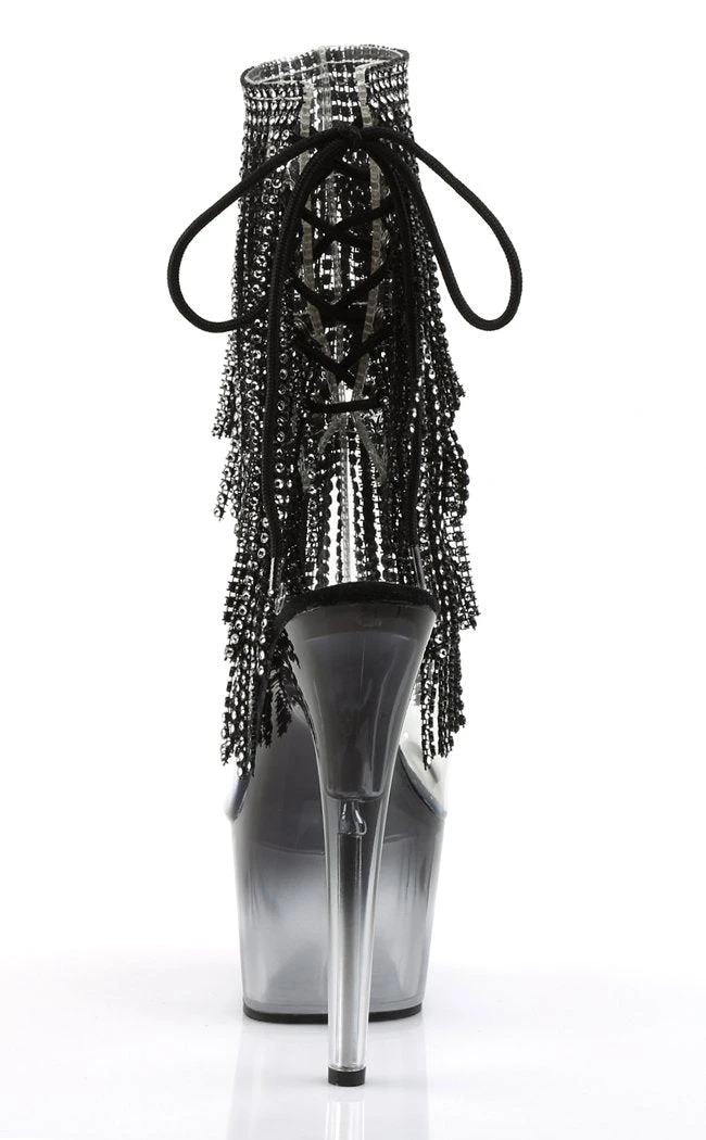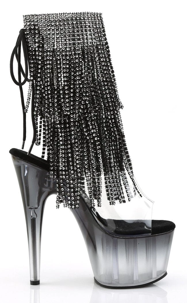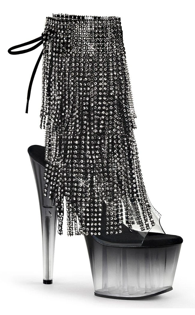 7″ Heel, 2 3/4″ PF Open Toe/Heel Lace-Up Fringe Ankle Boot