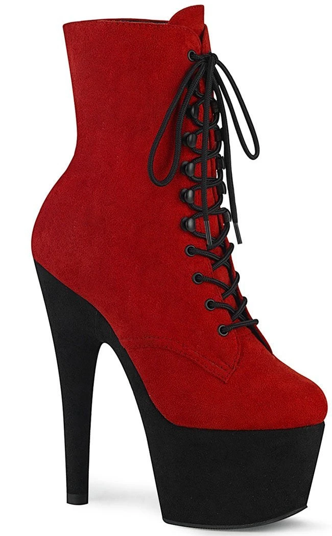 Pleaser ADORE-1020FSTT Red & Black Faux Suede Boots Pole Shoes