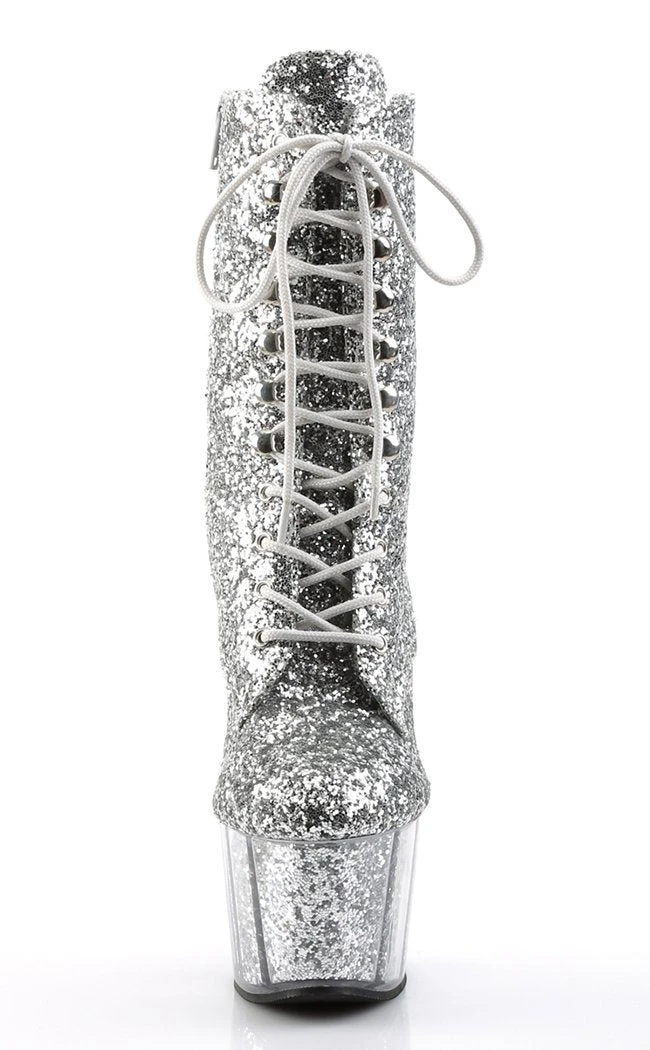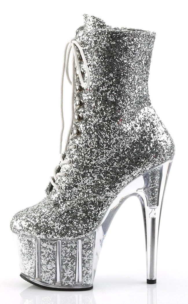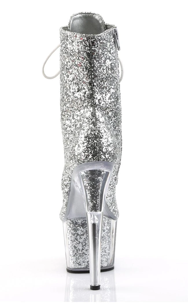 7″ Heel, 2 3/4″ PF Lace-Up Glitter Ankle Boot, Side Zip