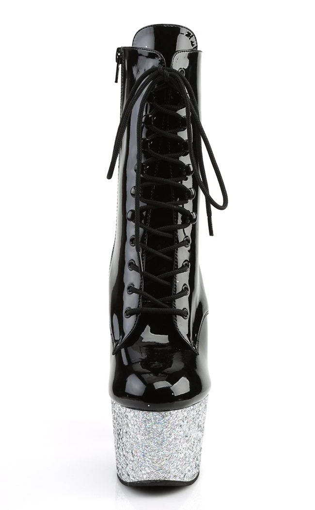 7″ (178mm) Heel, 2 3/4″ (70mm) Platform Front Lace-Up Ankle Boot, Inside Zip ClosureÂ