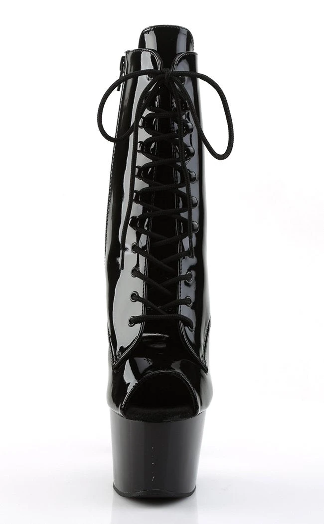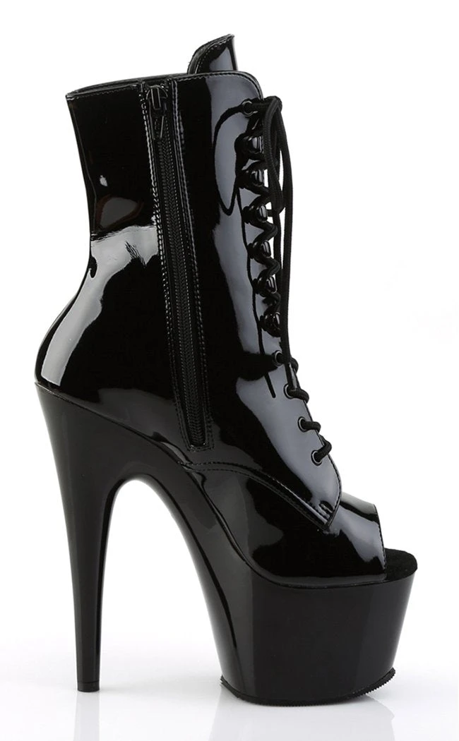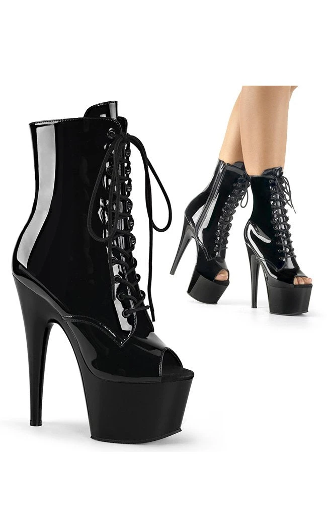 7″ Heel, 2 3/4″ PF Peep Toe Lace-Up Ankle Boot, Side Zip