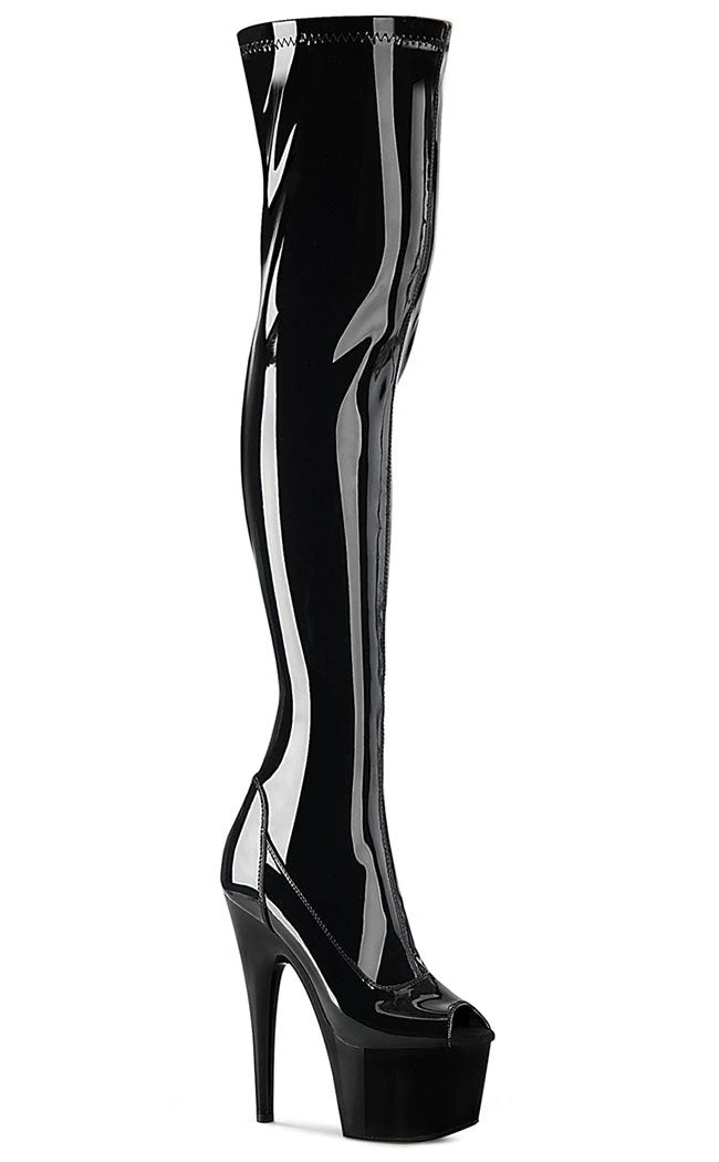 7″ (178mm) Heel, 2 3/4″ (70mm) Platform Peep Toe Stretch Thigh High Boot, Inside Zip Closure
