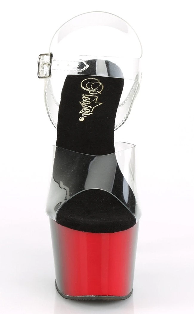 7″ (178mm) Heel, 2 3/4″ (70mm) Platform Ankle Strap Sandal Featuring Two Tone Platform Bottom and Heel