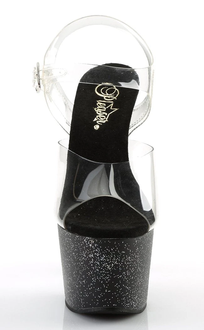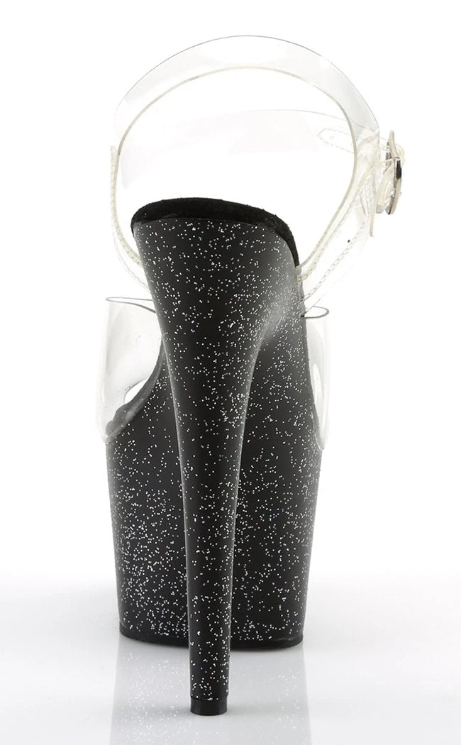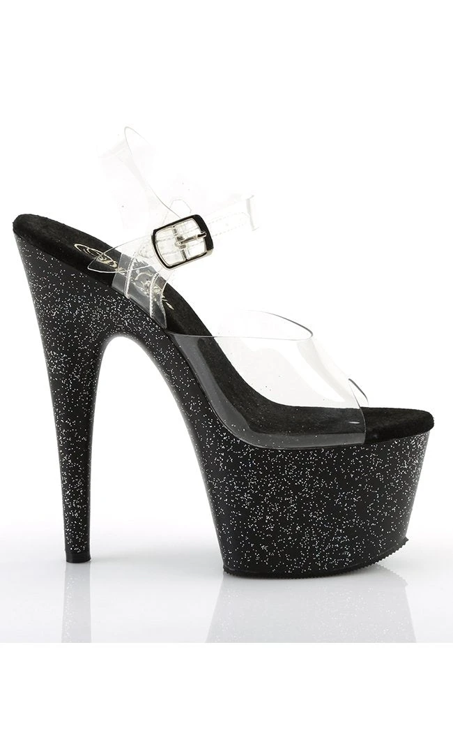 7″ Heel, 2 3/4″ PF Ankle Strap Sandal W/Mini Glitters