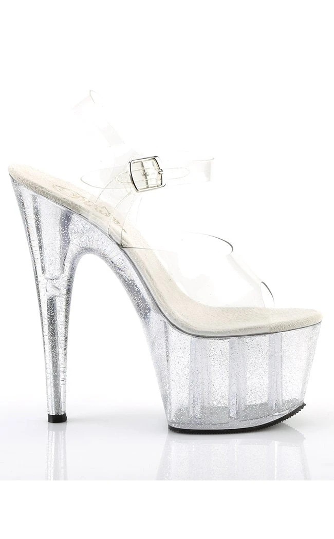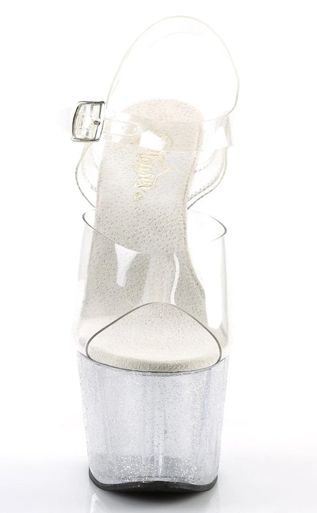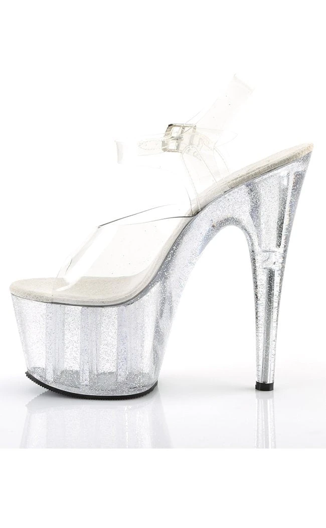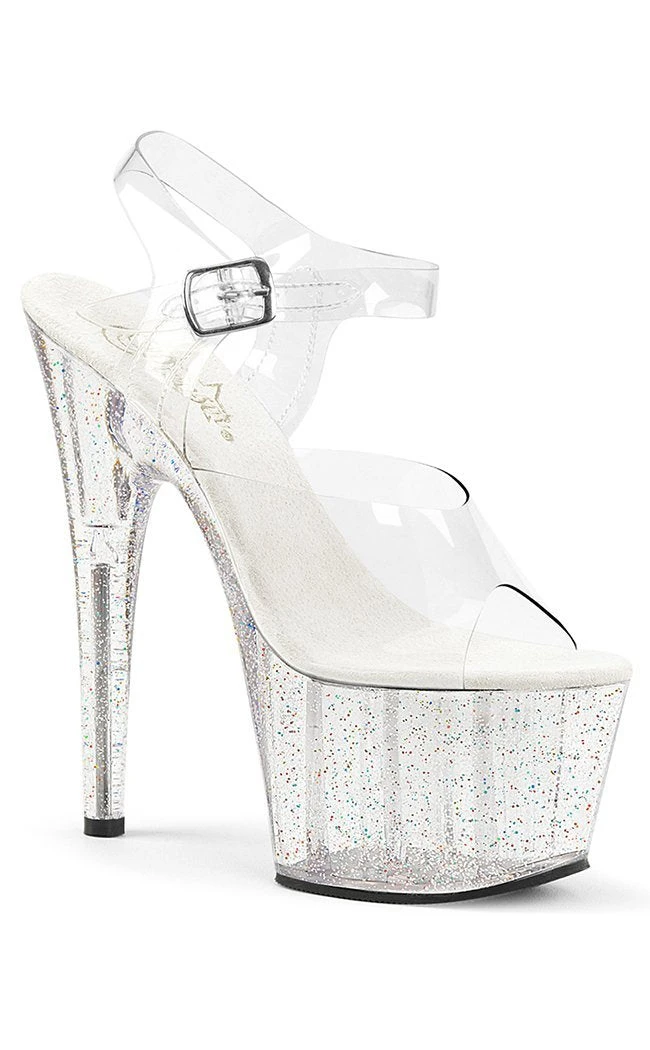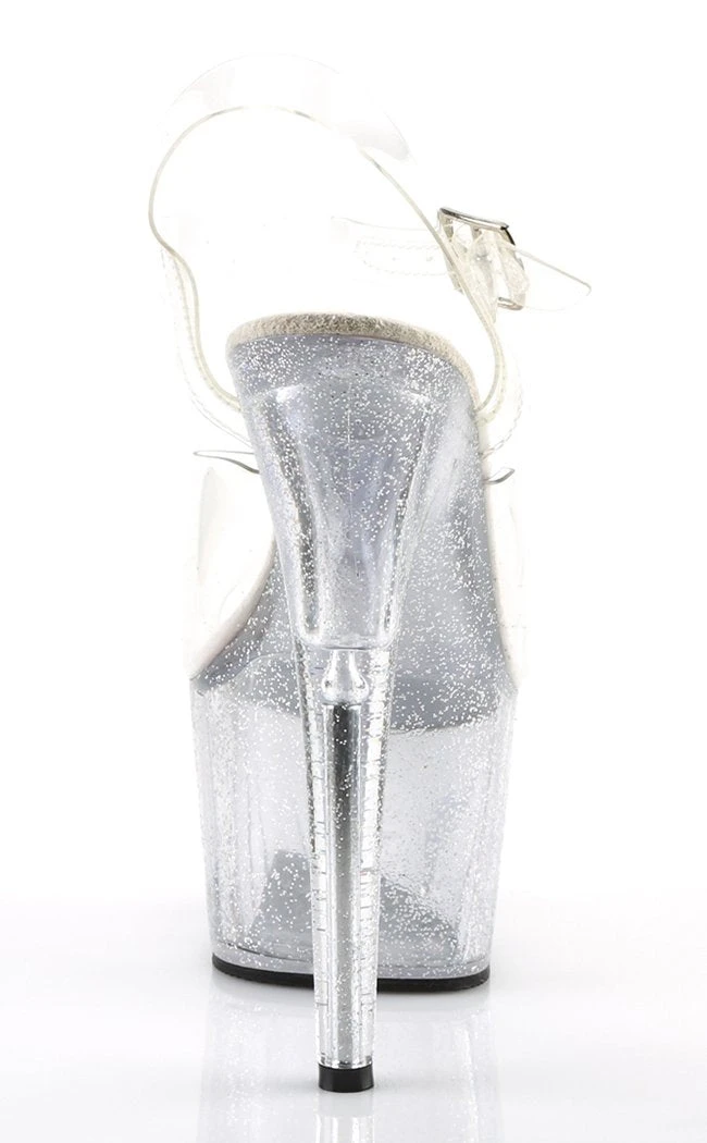 7″ Heel, 2 3/4″ PF Ankle Strap Sandal W/Mini Glitters