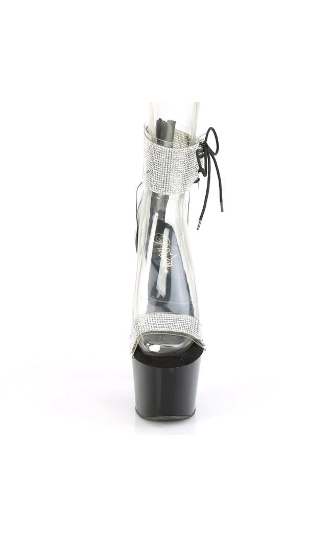 7″ Heel, 2 3/4″ PF Ankle Cuff Sandal w/Rhinestone, Back Zip