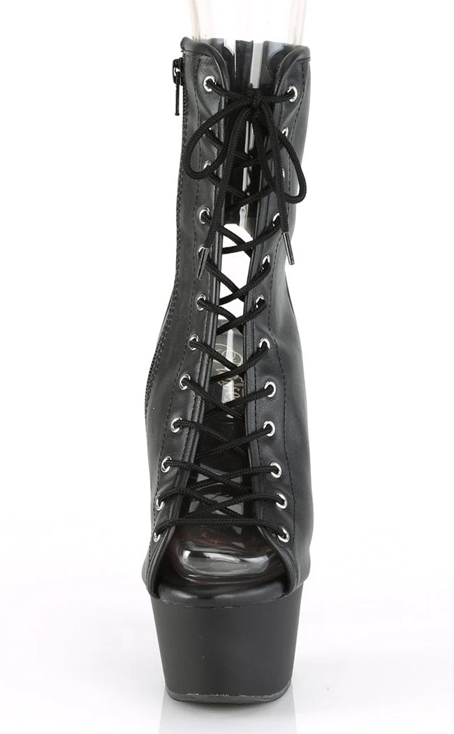 6″ Heel, 2 1/4″ PF Open Toe/Heel Ankle Boot, side Zip.