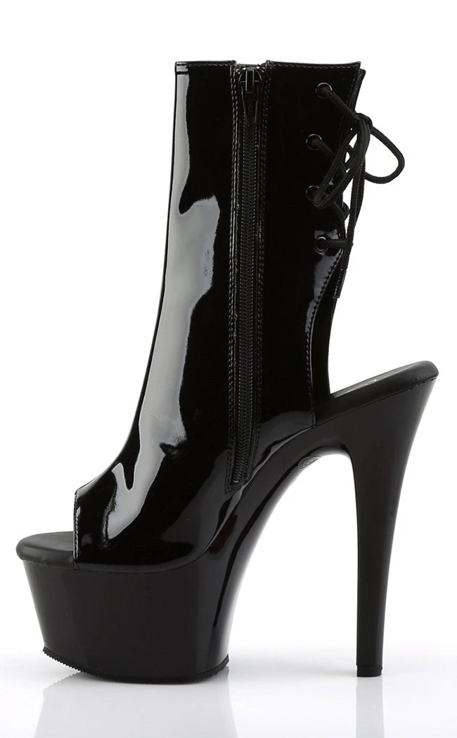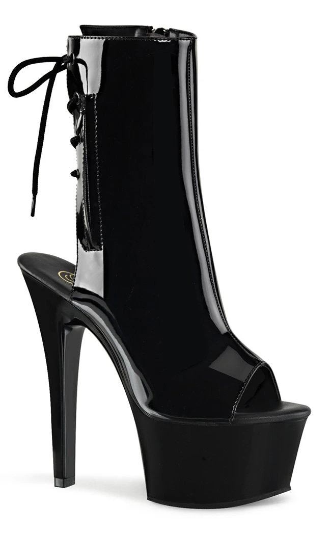 6″ Heel, 2 1/4″ PF Open Toe/Heel Ankle Boot, side Zip