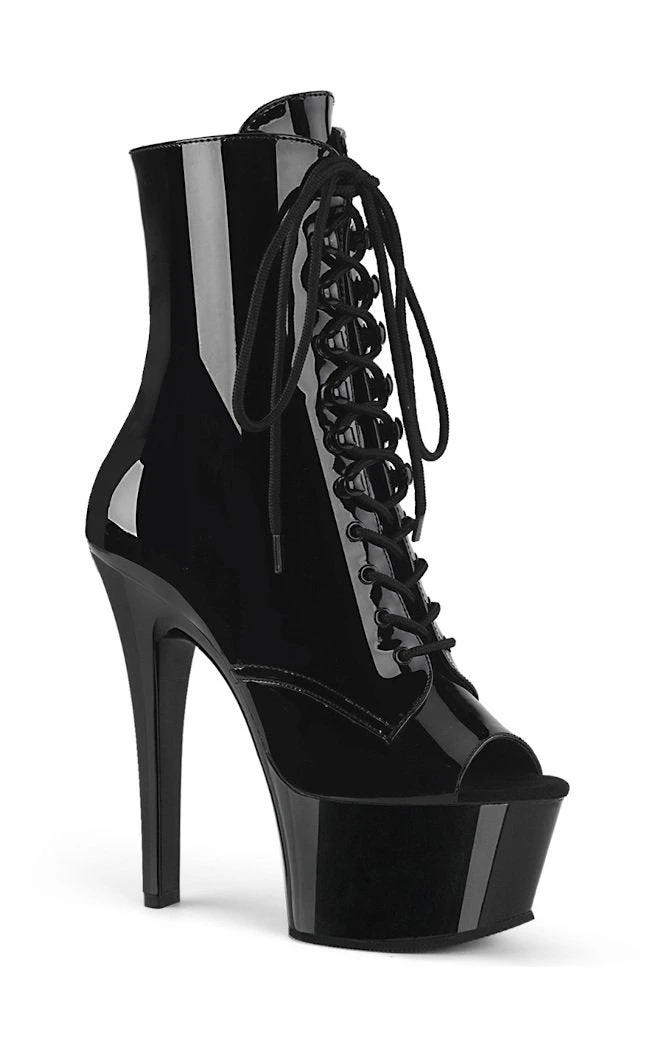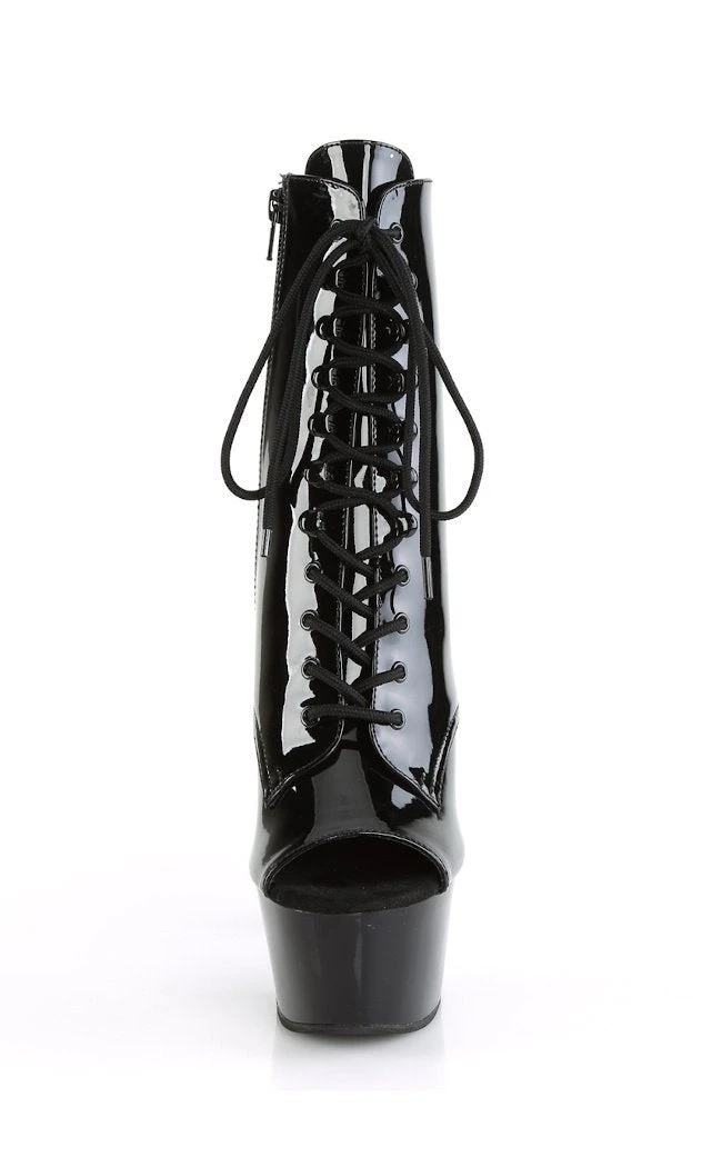 6″ (152mm) Heel, 2 1/4″ (57mm) Platform Open Toe Lace-Up Front Ankle Boot, Inside Zip Closure