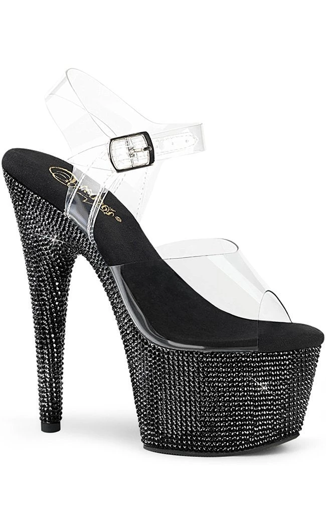 These babies are absolutely jaw droppingly gorgeous. Show your sugar daddy what you’re worth in these. Black rhinestones are painstakingly glued onto these shoes all over – catching the light and reflecting it. Every time you move your foot will sparkle like the worlds sexiest diamond.Â
