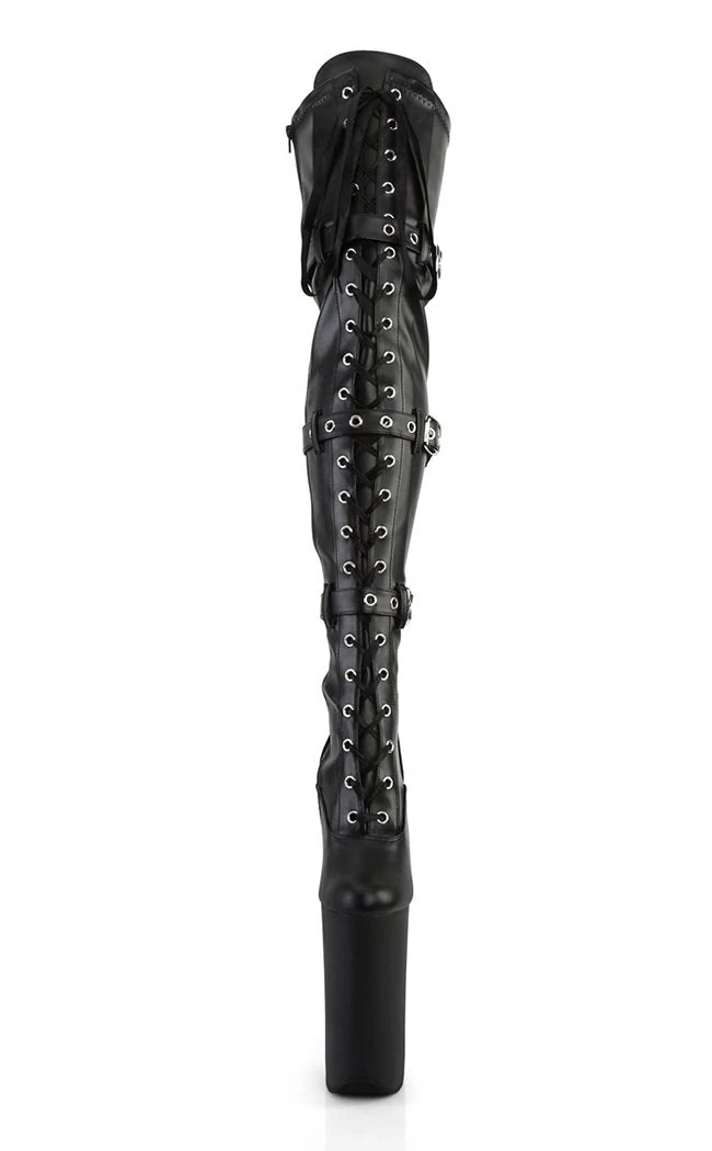 10″ Heel, 6 1/4″ PF Lace-Up Front Thigh High Boot, Side Zip